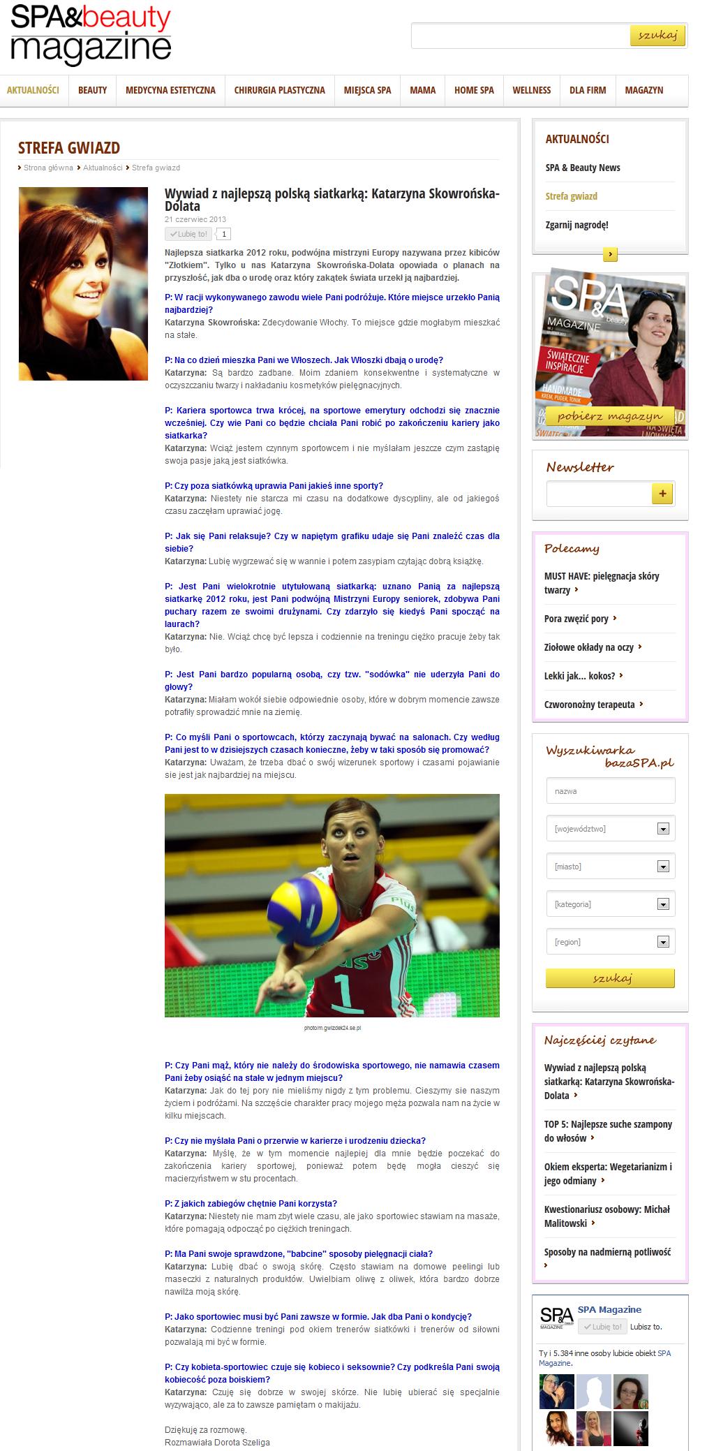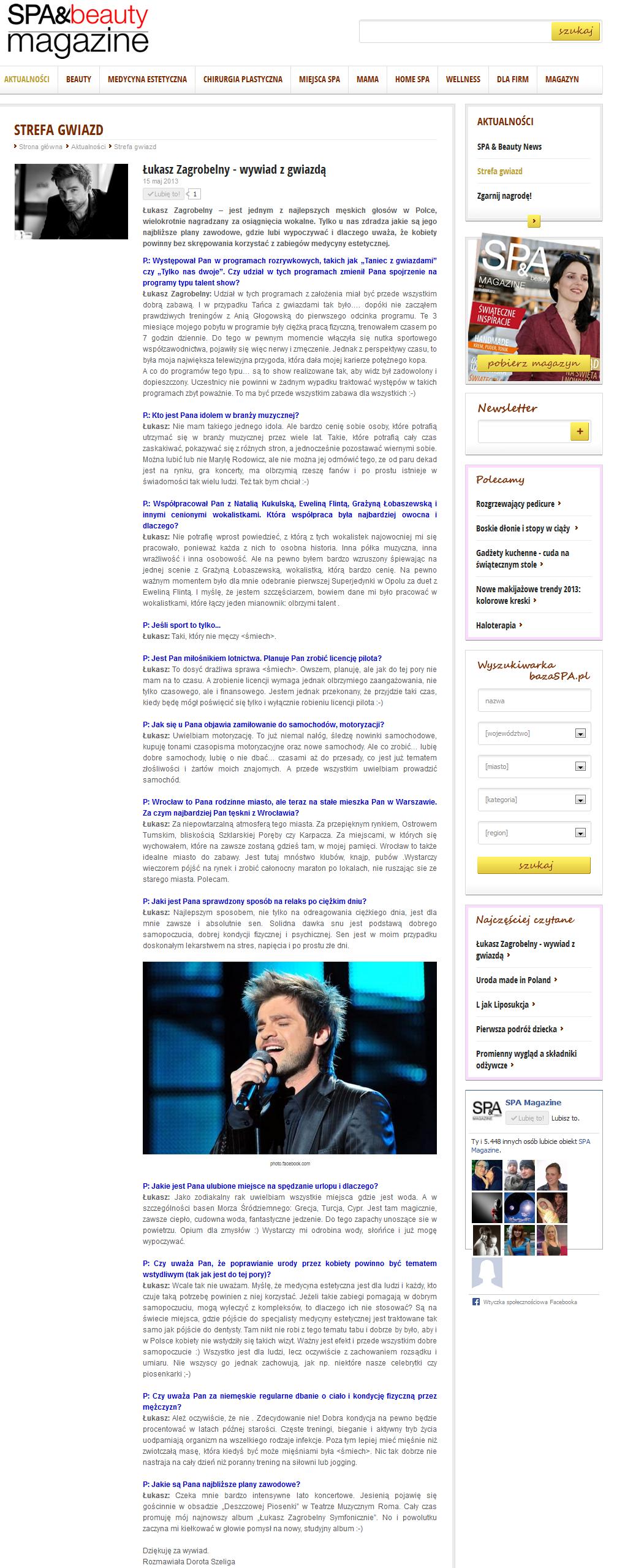 Podczas praktyk studenckich w redakcji SpaMagazine miałam możliwość i przyjemność przeprowadzić bardzo ciekawe wywiady z gwiazdami. Zajmowałam się także tworzeniem pytań do wywiadów przeprowadzanych przez innych redaktorów.